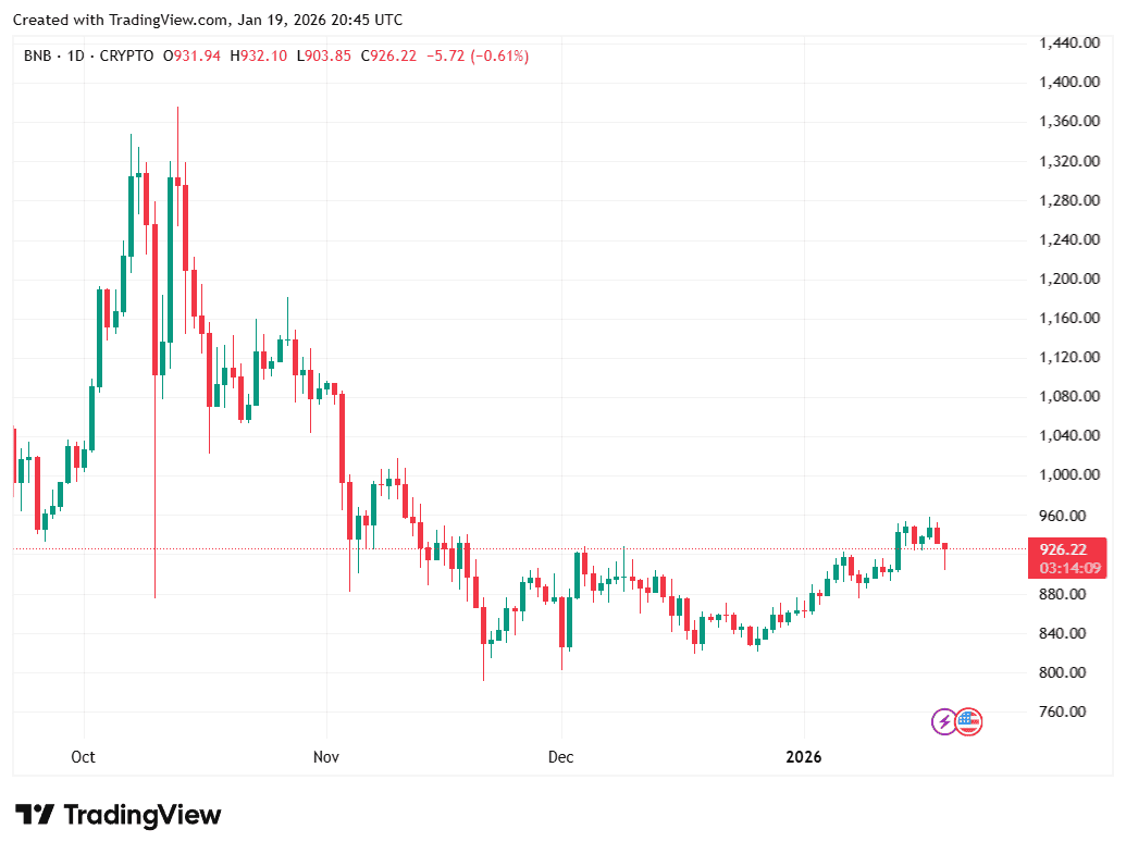 Binance Coin (BNB) enters mid-January with solid price support, trading around $935 after bouncing back from a short dip. The rise came after the BNB Foundation’s 34th quarterly burn of roughly 1.37 million tokens, an event most of the market expected. While price movement stays positive, attention has turned toward whether basic network activity can keep momentum going beyond supply-related events.